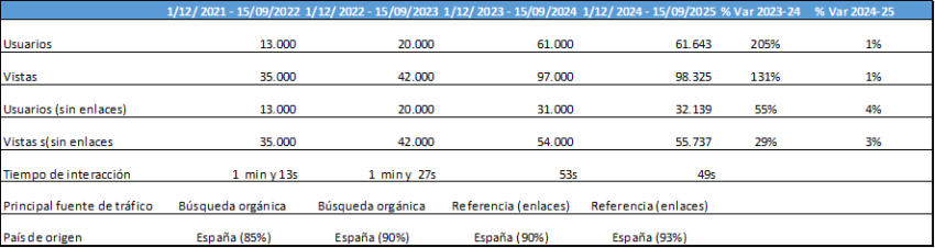 Como todos los años por estas fechas, toca realizar una valoración del impacto y la relevancia del blog, en este caso en su cuarto aniversario. Mantendremos el mismo período de análisis de años anteriores, del 1 de diciembre de 2024 hasta el 15 de septiembre de 2025.