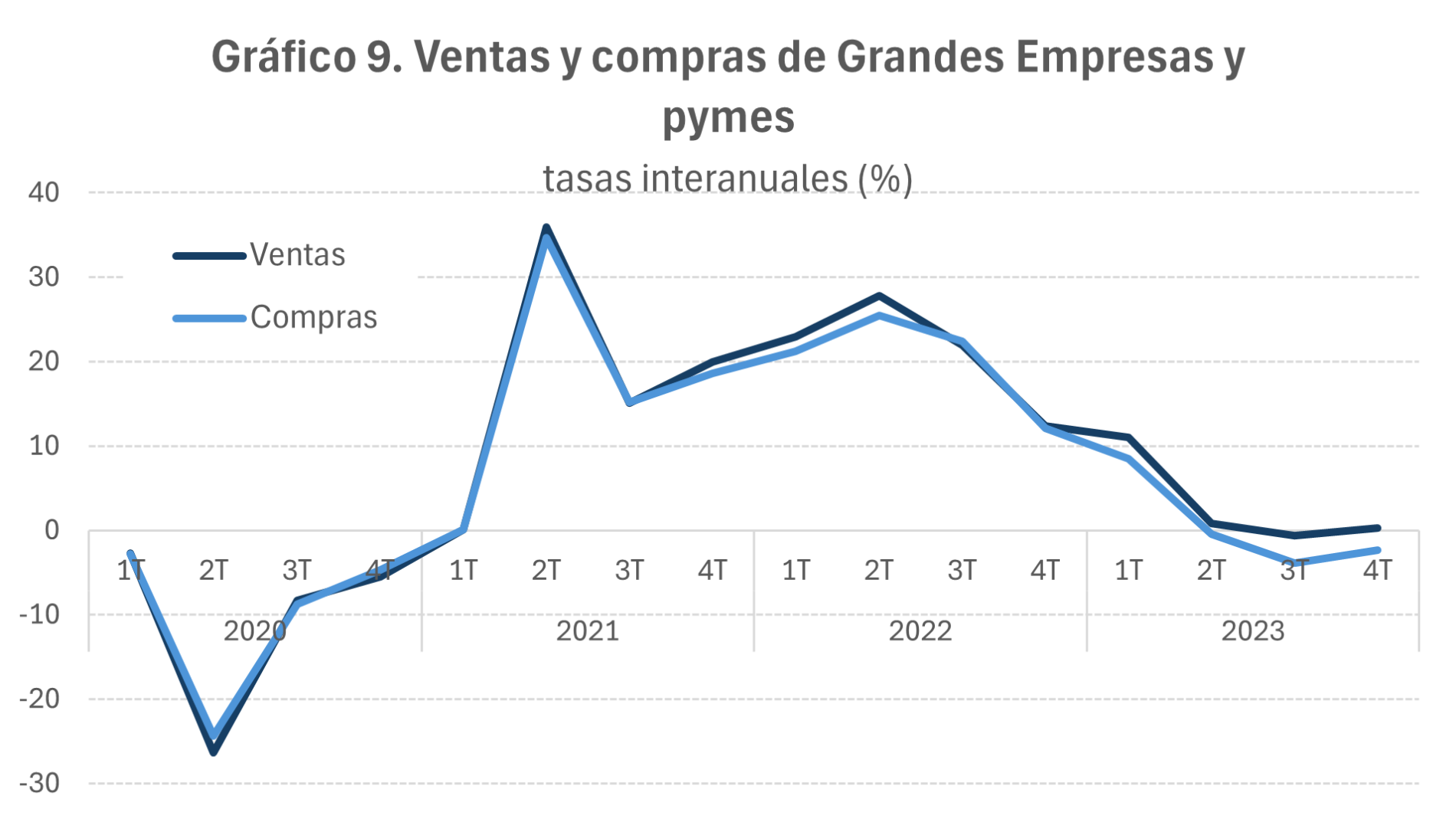 El seguimiento se completa con la información contenida en la estadística trimestral de Ventas, Empleo y Salarios en Grandes Empresas y Pymes en la que no solo se pueden encontrar las ventas, sino también las compras de más de 1 millón de empresas.