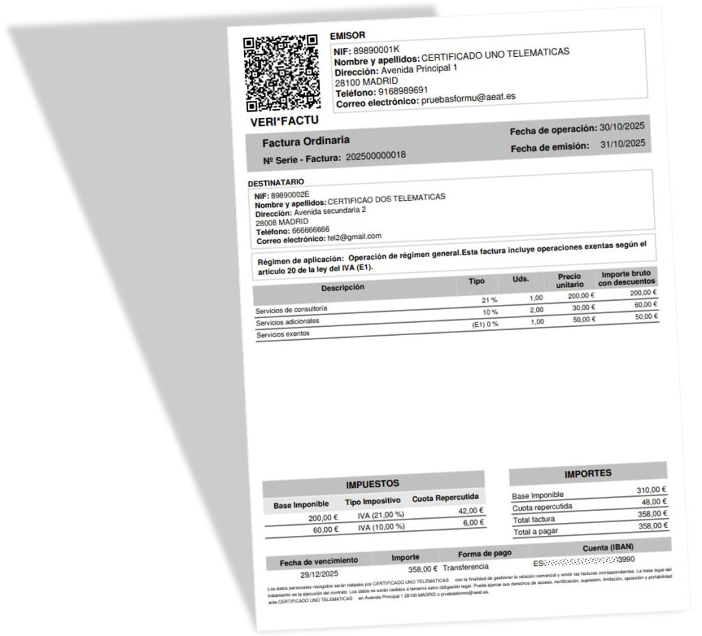 - en la modalidad VERI*FACTU, permite cotejar fiscalmente la factura con los datos obrantes en la Agencia Tributaria;